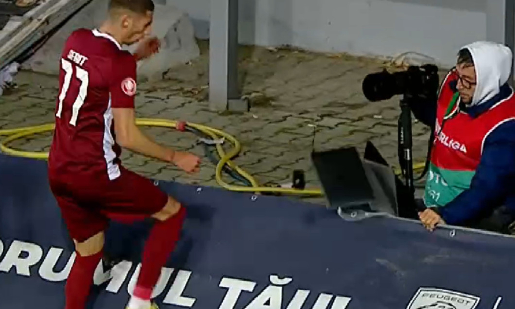 Finalul primei reprize a meciului Petrolul – CFR Cluj a fost marcat de un moment surprinzător: mijlocașul ardelenilor, Andres Sfait (20 de ani), a lovit nervos un panou publicitar din spatele porții, după ce a pierdut un duel cu un adversar. În spatele acelui panou se afla fotoreporterul Florin Ardelean, al cărui laptop a fost distrus în urma impactului.