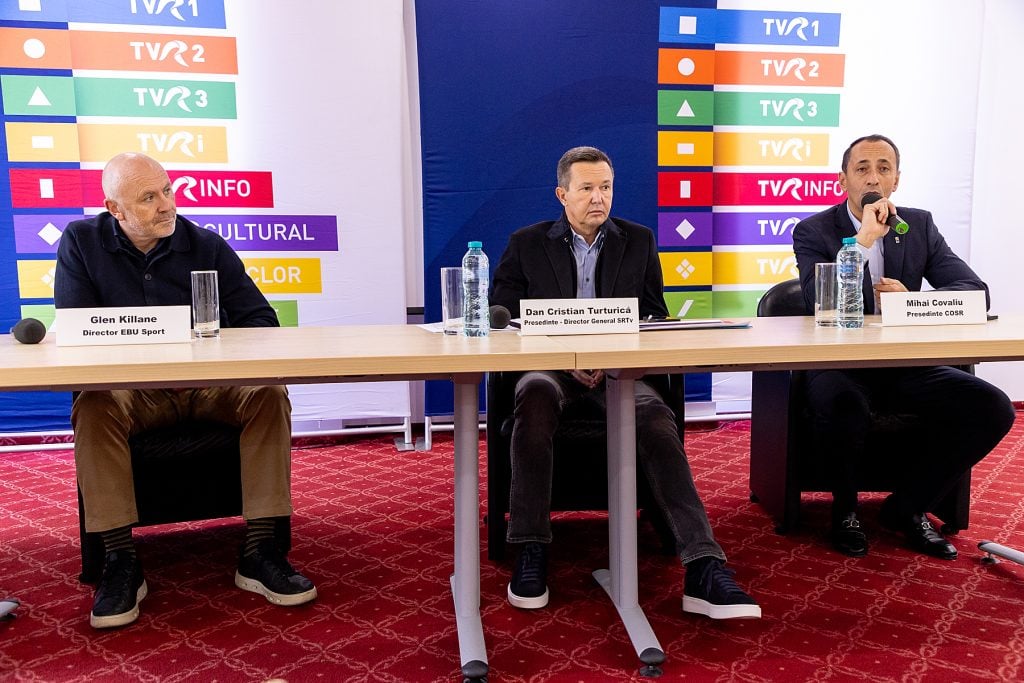 La evenimentul de la sediul postului public au participat Dan Cristian Turturică, președinte-director general SRTv, Glen Killane, director EBU Sport, și Mihai Covaliu, președinte COSR.