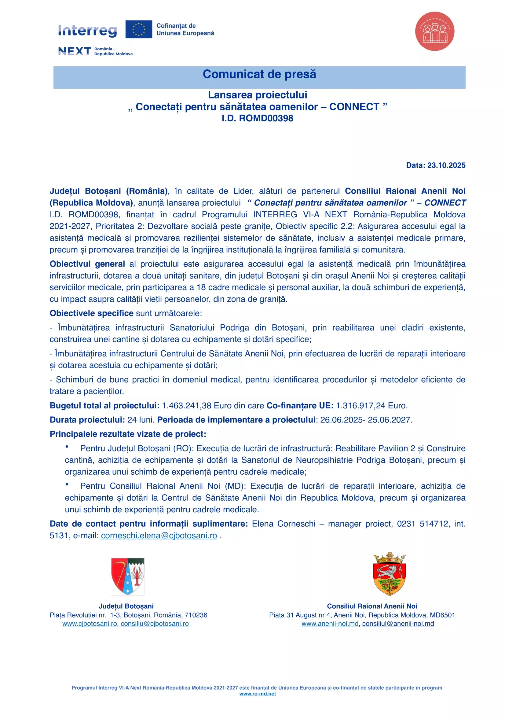 Articolul Lansarea proiectului „Conectați pentru sănătatea oamenilor – CONECT” I.D. ROMD00398 a fost publicat prima dată în Curierul National.