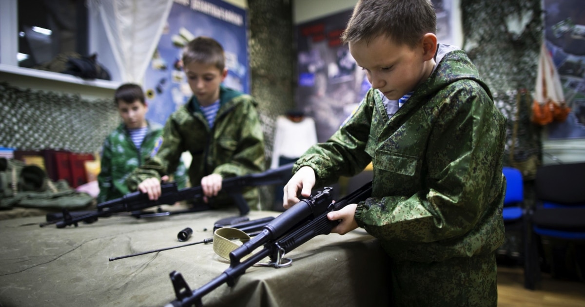 Exercițiile în care sunt angrenați acești copii sunt competiții de tragere cu arma sau de aruncare de grenade, medicină de front, control al dronelor și antrenament tactic.