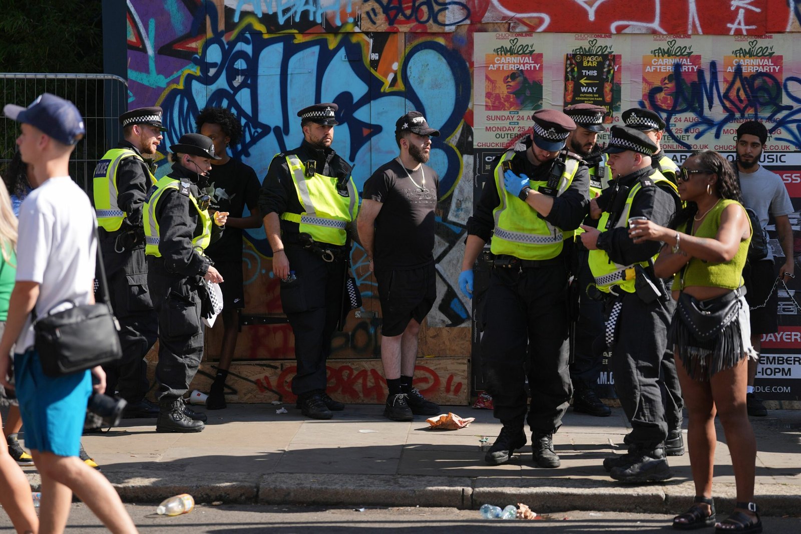Polițiștii au instituit cordoane pentru a preveni violențele și au făcut trei arestări la fața locului.
